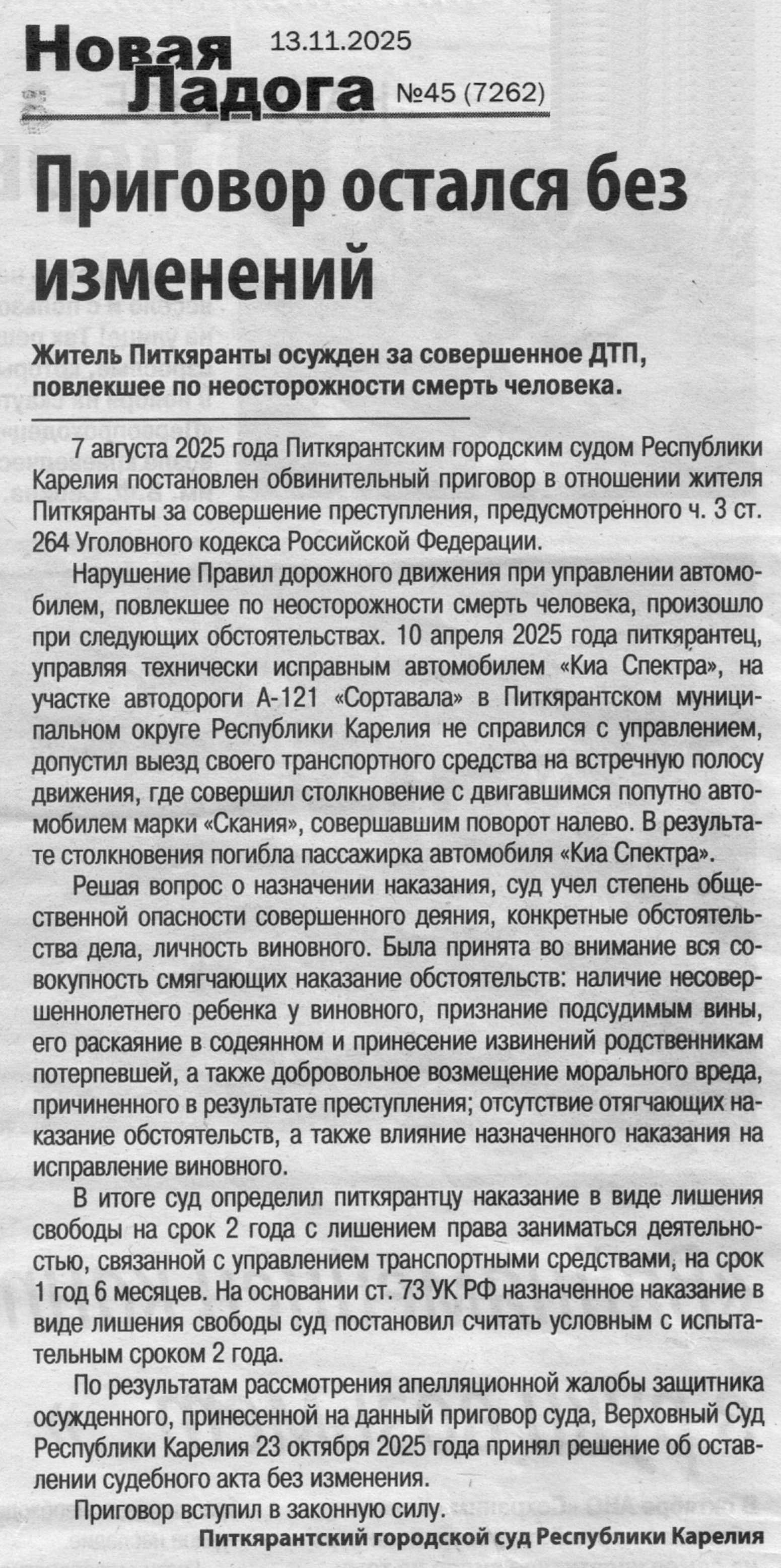 | Статья в газете Новая Ладога № 45 (7262) | версия для печати |